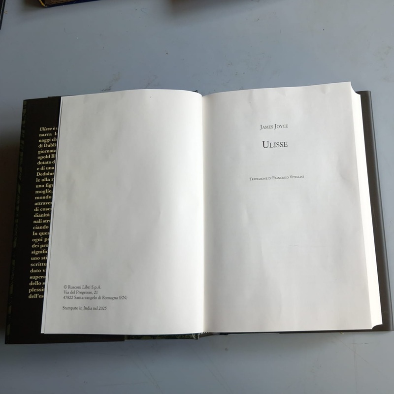 Imponente, il grassoccio Buck Mulligan arrivò dalla cima delle scale, portando in mano una ciotola piena di schiuma su cui si incrociavano uno specchio e un rasoio. Una vestaglia gialla con la cintura slacciata si gonfiava dolcemente alle sue spalle nella lieve aria mattutina. Sollevò la ciotola e intonò: