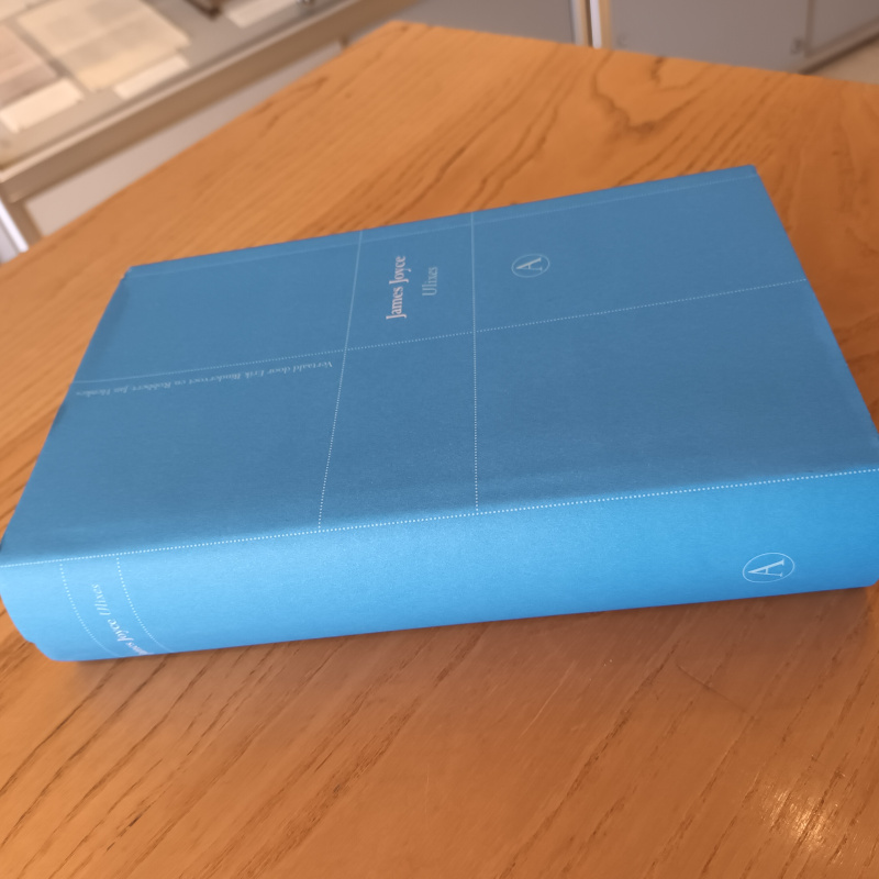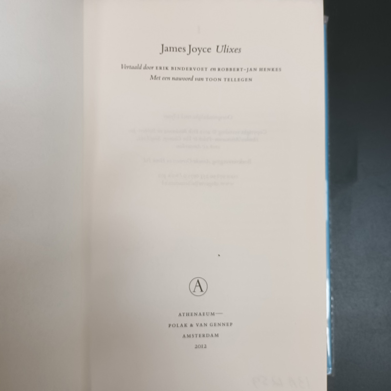 Statig kwam plompe Buck Mulligan uit het trapgat met een bekken schuim waarop een spiegel en een scheermes lagen gekruist. Een gele kamerjas, ongegord, werd achter hem zachtjes opgehouden door de milde morgenlucht. Hij hief het bekken ten hemel en intoneerde:
